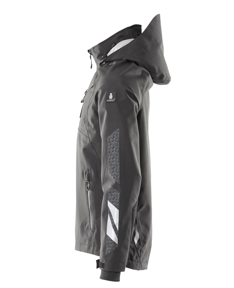 Mascot Hard Shell Jacke, wasserdicht Jacke Größe 2XL, schwarz Atmungsaktiv, wind- und wasserdicht. Nähte sind verklebt. Kapuze ist abnehmbar, gefüttert und mit verstellbaren Elastikschnüren versehen. Verschluss mit Reißverschluss und inwendiger Wetterschutzleiste. Innentasche mit Reißverschluss. ID-Kartenhalter ist abnehmbar. Brusttasche mit Reißverschluss. Vordertaschen mit Reißverschluss. Gummizug in der Unterkante, regulierbar. Ärmel mit CORDURA®-Verstärkung. Rippenbündchen (verdeckt unter der Wetterschutzleiste) an den Handgelenken. Mit Druck und Reflexen. OEKO-TEX® STANDARD 100. EN 343 3/3
