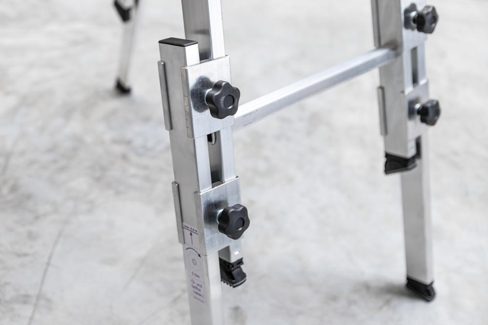 Konische Holmführung, untere Holmenden und Holmverlängerungen mit rutschsicheren nivello®-Leiterschuhen, obere Holmenden mit Endkappen Test