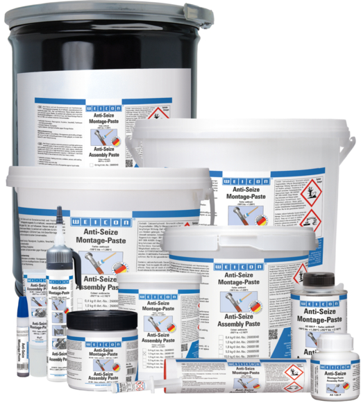 Langhaltender Schutz gegen Korrosion, Festfressen und VerschleißTestTestWEICON Anti-Seize ist hochtemperaturbeständig und hat eine außergewöhnlich gute Trennwirkung. Anti-Seize wird als Schutz-, Trenn- und Schmierstoff für hochbeanspruchte Teile eingesetzt. Optimal aufeinander abgestimmte Feststoffanteile sowie ausgewählte Additive ermöglichen ein breites Anwendungsspektrum. Anti-Seize schützt vor Korrosion, Festfressen und Verschleiß, Stick-Slip-Erscheinungen, Oxidation und Passungsrost und elektrolytischen Reaktionen („Kaltverschweißen“).